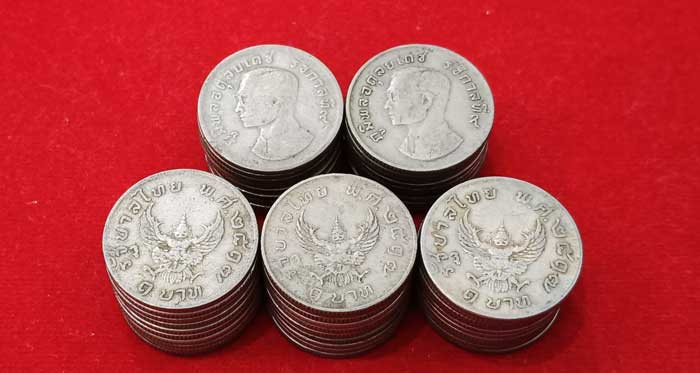 วัดใจ 100 เดียวแดง ++ เหรียญ 1 บาท หลังครุฑ ปี2517 สภาพผ่านใช้งาน 50 เหรียญ