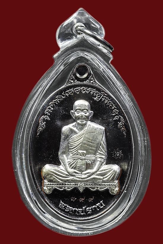 เหรียญมหาปราบ หลวงปู่บุญ ธมฺมธีโร วัดบ้านหมากมี่ ครบรอบ 96 ปี พ.ศ.2559 ต.กระโสบ อ.เมือง จ.อุบลราชธานี เนื้อนวะหน้ากากเงิน พร้อมเลี่ยม (( แดงวัดใจ 120 ))