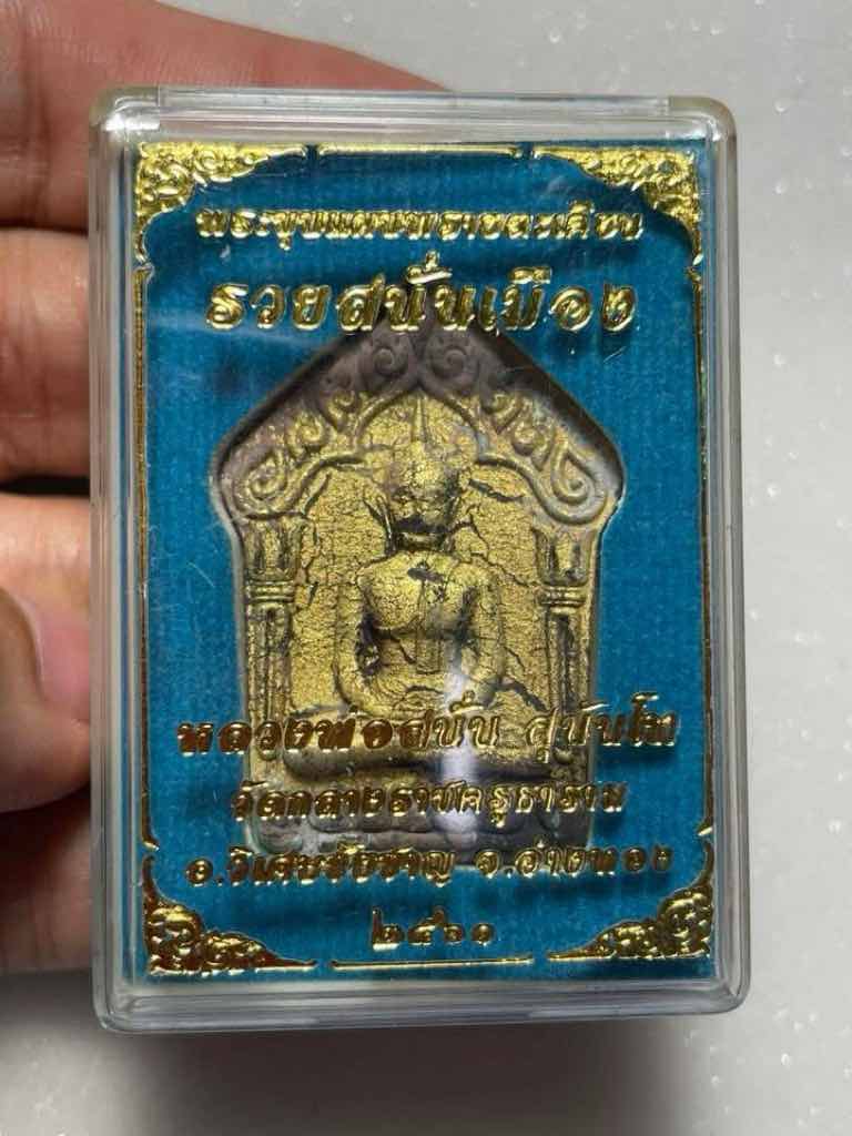 300.- ems ขุนแผนพรายตะเคียน รวยสนั่นเมือง เนื้อก้นครก ปิดทองในพิมพ์ ตะกรุดทองคำคู่,โค๊ดเงิน no.304 ปี 61 หลวงพ่อสนั่น วัดกลางราชครู อ่างทอง สวยเดิมคากล่อง |