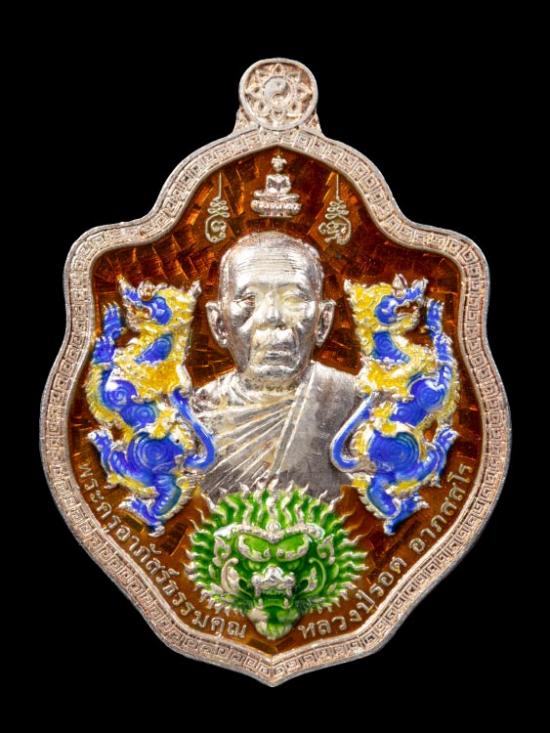เหรียญ รุ่นรวยรับทรัพย์ หลวงปู่รอด อาภัสสโร วัดโคกกรม จ.สุริ นทร์ พ.ศ.2563 เนื้อเงิน ลงยาสีแดง หน้ากากทองคำ ตอก 2 โค๊ต ตอกเลข เหรียญสวย แต่แผ่นหน้ากากทองคำหลุด !! |