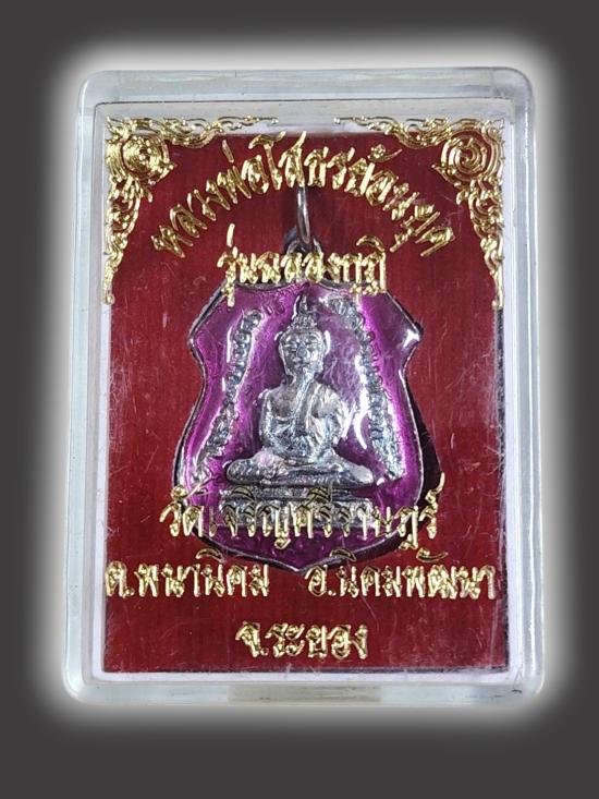 A1879.เหรียญกะไหล่เงินลงยา หลวงพ่อโสธร ย้อนยุค รุ่นฉลองกุฏิ วัดเจริญศรีราษฎร์ ระยอง กล่องเดิม |