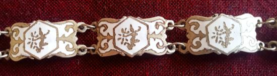 สร้อยข้อมือเงินผสม หรือ แปะตั้ง ลายนางมณีฯ ลงถมยาฯ สีขาว (รหัส 140361150.2) |