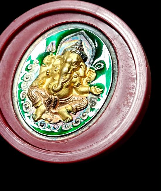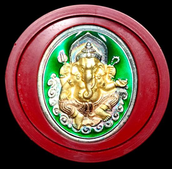 @@วัดใจ100@@เหรียญพระพิฆเนศวร เนื้อ 3 กษัตริย์ลงยาสีเขียว กรมศิลปากร ปี 2547คับผม |