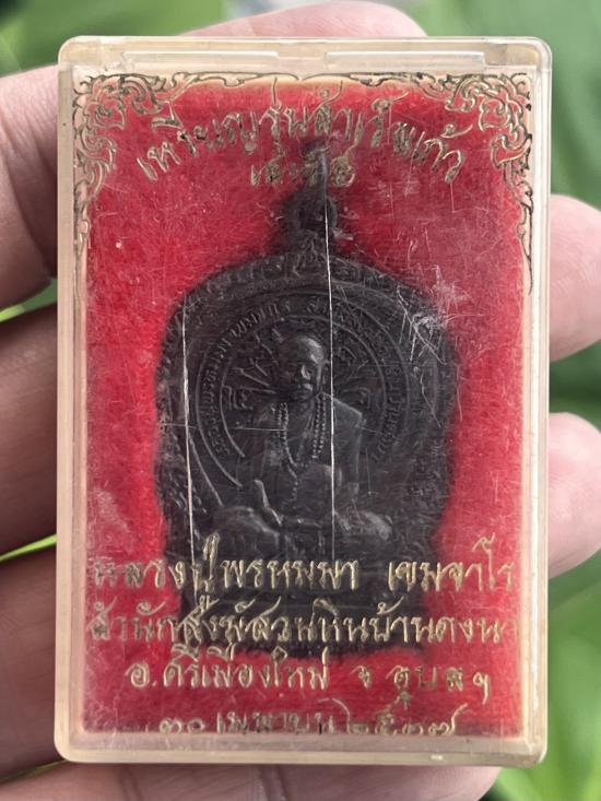 เหรียญนั่งพานรุ่นสำเร็จแก้ว เสาร์5 หลวงปู่พรหมมา เขมจาโร สำนักสงฆ์สวนหินบ้านดงนา อุบลราชธานี ปี2537 สวยนอนกล่อง |