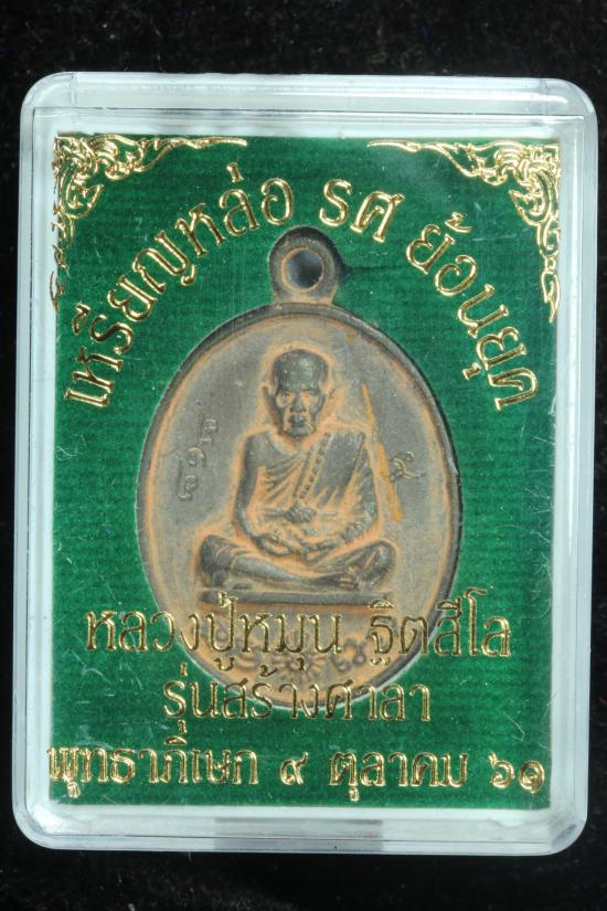 ** เนื้อเหล็กน้ำพี้(ทนสิทธิ์) ** เสกใหญ่ 2 วาระ เสกวัดบ้านจาน+วัดระฆังโฆษิตาราม เหรียญหล่อ รศ. ย้อนยุค รุ่นสร้างศาลา ปี 2561 หลวงปู่หมุน หมายเลข 818 พร้อมกล่อง |
