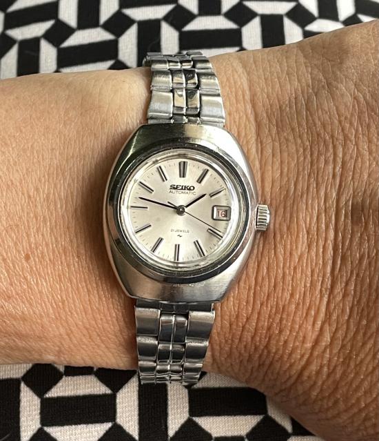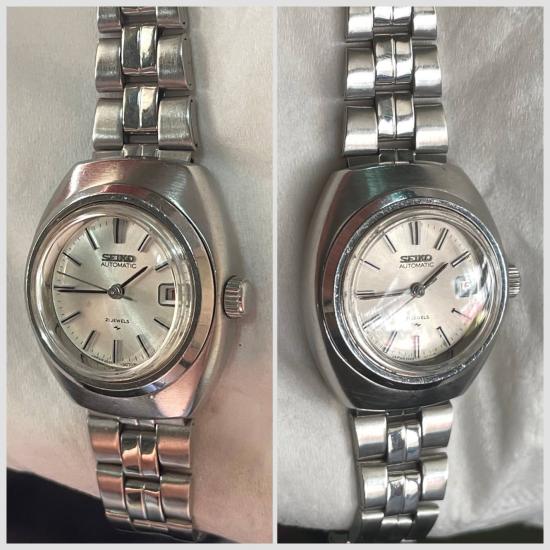 นาฬิกาผู้หญิง Seiko Automatic 21 Jewels หน้าสีเงิน ขนาด 25มม.(ไม่รวมเม็ดมะยม) 1 หน้าต่าง วันที่เปลี่ยนปกติ เปลี่ยนเร็วได้ นาฬิกาพร้อมใช้งาน เดินดี เดินปกติ ตัวเรือนสวย หน้าสวย |