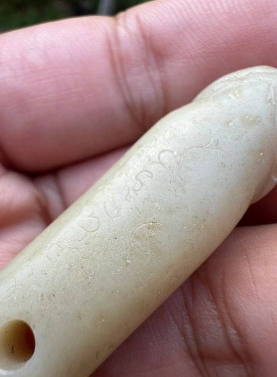 ปลัดขลิกหินแกะ จารตัวธรรมลาว เต็มสูตร ยาว 1.8 นิ้ว เก่าแท้ไม่ทราบที่ครับ
