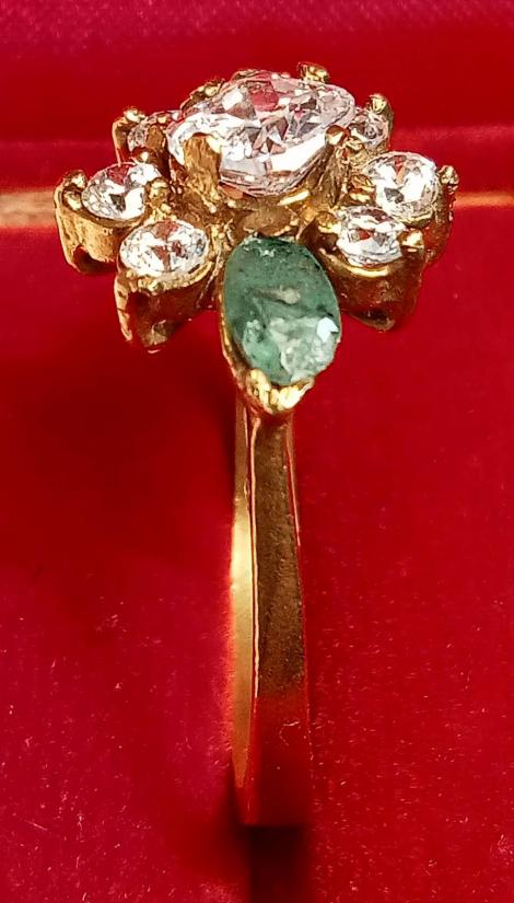 แหวนทองเหลืองขัดเงา หัวแหวนเป็นหนามเตยเกาะพลอยไพลิน มรกต เพชรประดิษฐ์ ทรงดอกไม้ ไซซ์ประมาณ 58 วงนี้อายุหลายสิบปี มรกตมีรอยบิ่นนิดนึง สภาพตามรูป ราคาเบา ๆ ครับ แถมแหวนงานจิวเวอร์รี่ ไซซ์ประมาณ 54 (ขยายไซซ์ได้เล็กน้อย) ให้อีก 1 วง สุดคุ้ม ส่งฟรีทั่วไทย รับประกันตามกฎครับ |