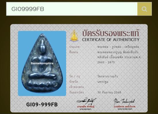 พระหล่อกลีบบัวหลวงปู่บุญ หลังยันต์ วัดกลางบางแก้ว เนื้อเมฆพัตร ปี 2460 #พร้อมบัตรสมาคม