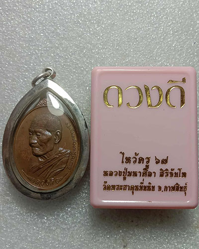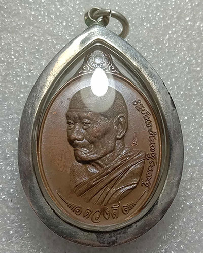 ดวงดี หลวงปู่มหาศิลา เนื้อตะปูสังฆวานร (นิยม) หมายเลข ๑๘๑๔ (เลี่ยมเงิน)กล่องเดิม
