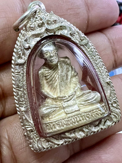 รูปหล่อลอยองค์ เนื้อเงิน พร้อมเลี่ยมกรอบเงิน หลวงพ่อลมูล ขันติพโล วัดเสด็จ อ.เมือง จ.ปทุมธานี