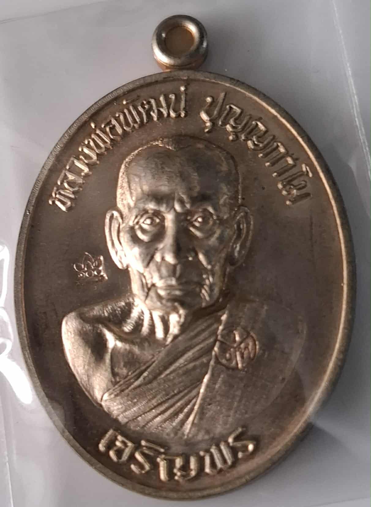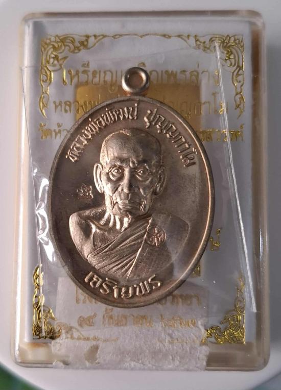 เหรียญเจริญพรล่าง 63 หลวงพ่อพัฒน์ ปุญฺญกาโม เนื้อทองแดงพรายเงิน เลข ๖๘๐๐ กล่องเดิม |