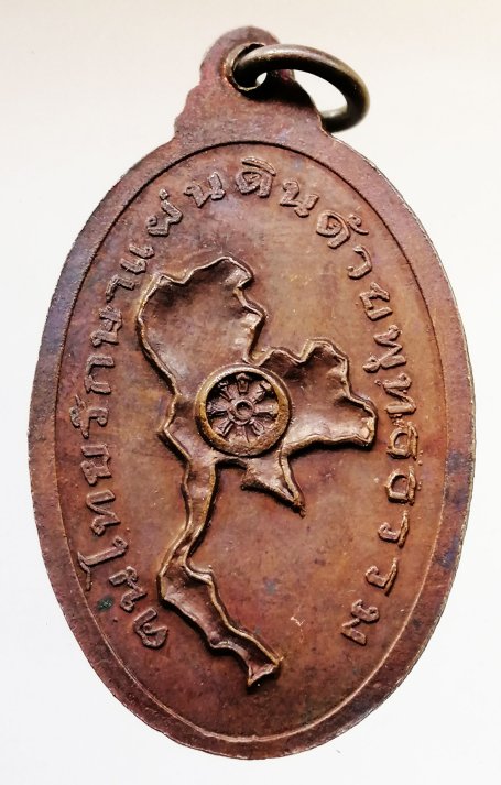 เหรียญสมเด็จพระนเรศวรมหาราช ด้านหลังเป้นรูปแผ่นที่ประเทศไทย ระบุคำว่า คนไทยรักษาแผ่นดินด้วยพุทธธรรม อธิษฐานจิตโดย หลวงพ่อจรัญ วัดอัพวัน ปี2533 เป็นเหรียญที่ประสบการณ์มากมาย มีประวัติเรื่องราวที่น่าสนใจ ยิ่งเป็นเนื้อทองแดงรมน้ำตาลเดิม ๆ สภาพสวยตรงตามรูป