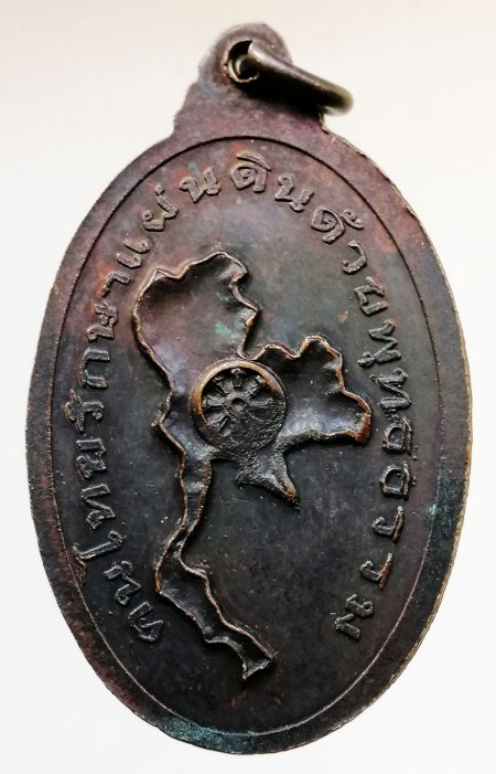 เหรียญสมเด็จพระนเรศวรมหาราช ด้านหลังเป้นรูปแผ่นที่ประเทศไทย ระบุคำว่า คนไทยรักษาแผ่นดินด้วยพุทธธรรม อธิษฐานจิตโดย หลวงพ่อจรัญ วัดอัพวัน ปี2533 เป็นเหรียญที่ประสบการณ์มากมาย มีประวัติเรื่องราวที่น่าสนใจ ยิ่งเป็นเนื้อทองแดงรมน้ำตาลเดิม ๆ สภาพสวยตรงตามรูป