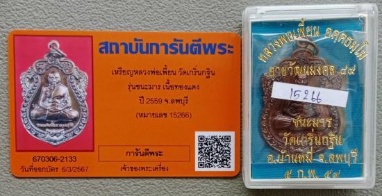 เหรียญหลวงพ่อเพี้ยน วัดเกริ่นกฐิน จ.ลพบุรี ปี2559 รุ่นชนะมาร เนื้อทองแดง หมายเลข กล่องเดิม พร้อมบัตรรับรอง ตามรูปครับ