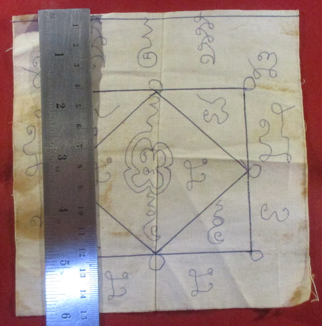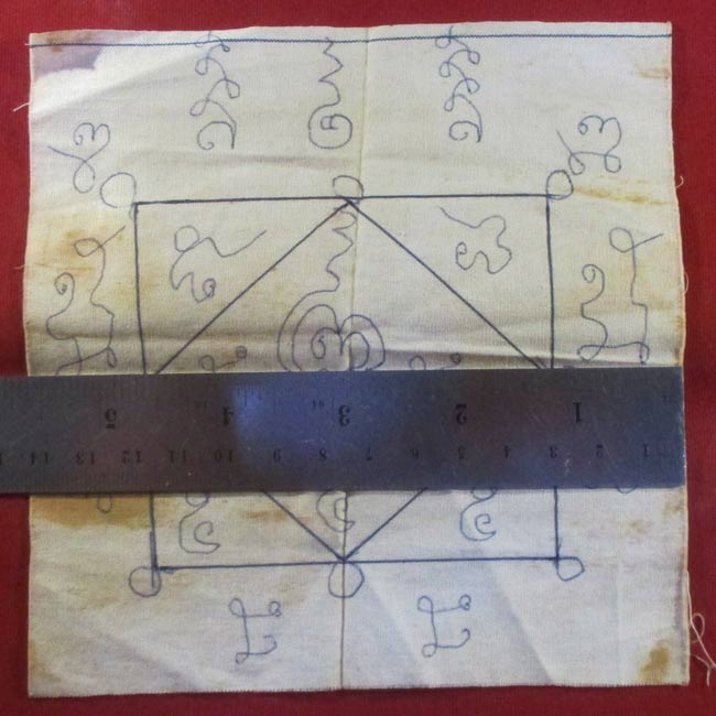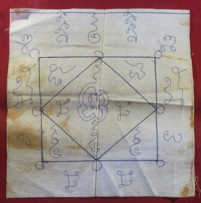 ผ้ายันต์ ไม่ทราบที่ จารยันต์ด้วยมือ ครับ