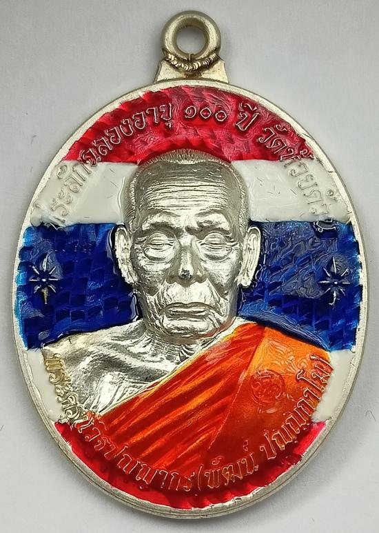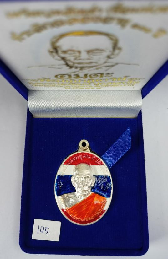 เหรียญห่วงเชื่อมหลังเต่า รุ่น"อมตะพัฒน์ปาฏิหาริย์" หลวงพ่อพัฒน์ วัดห้วยด้วน เนื้อเงินลงยาลายธงชาติ เบอร์ 105 พร้อมกล่องเดิมครับ (น้ำหนักเหรียญ 20.52กรัม สร้างเพียง111องค์)