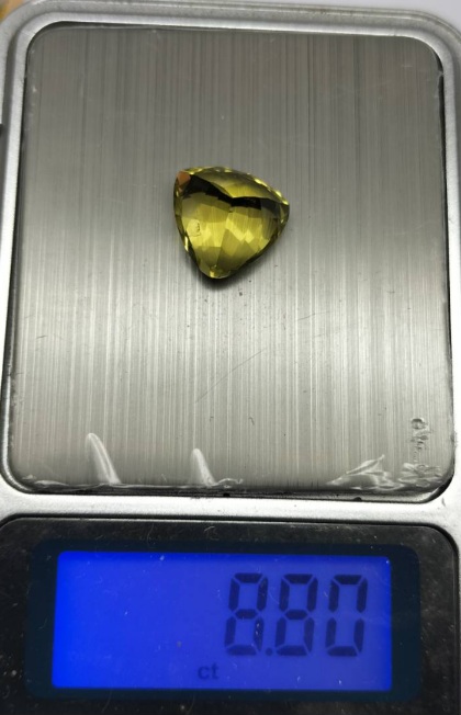 พลอยเลมอนควอตซ์ ทรงสามเหลี่ยม น้ำหนัก 8.80 กะรัต ไม่ผ่านการเผา |