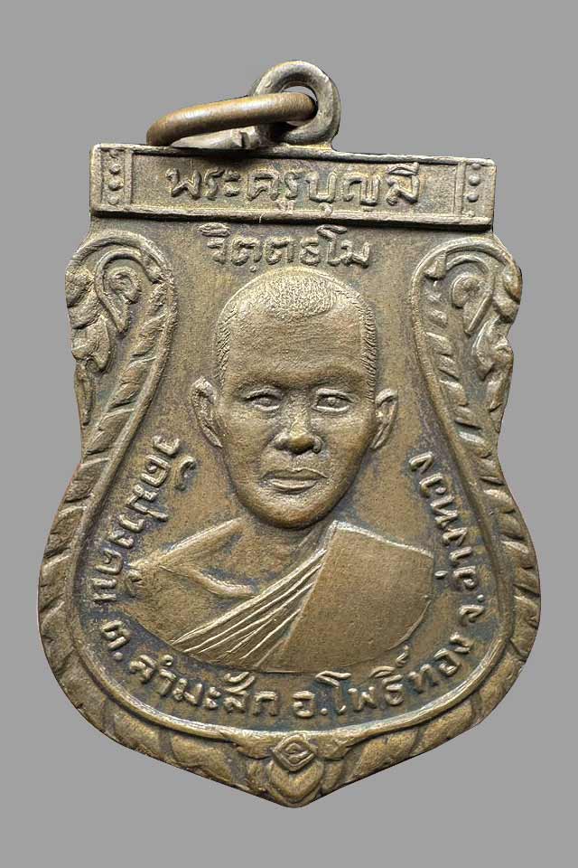 เหรียญพระครูบุญมี จิตฺตธโม วัดม่วงคัน หลังหลวงพ่ออุปัชฌาย์นุ่ม