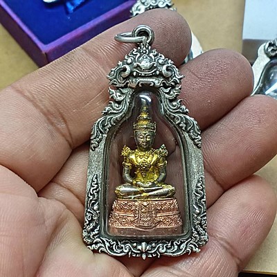 พระแก้วมรกต กรมสรรพสามิตจัดสร้าง วัดพระศรีรัตนศาสดารามเนื้อเงินสามกษัตริย์ โค๊ด 3 ปี 2539 พร้อมเลี่ยมกรอบเงินแท้ 92.5% ขึ้น งานมือ กรอบหนา รมดำ สวยๆ... |