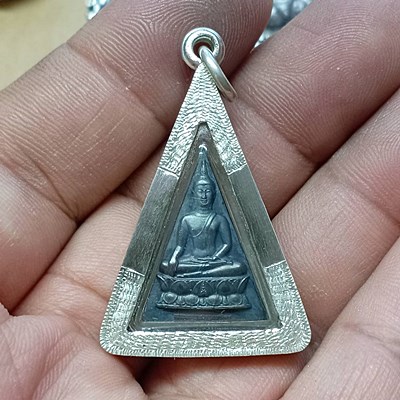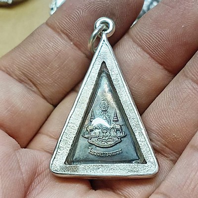 พระสมเด็จจิตรลดาโครงการหลวง เนื้อเงิน พิมพ์เล็ก ในหลวงครองราชย์ครบ 50 พรรษา ปี 2539 กล่องเดิม พร้อมเลี่ยมกรอบมือหนึ่งเงินแท้ งาน 92.5% ขึ้น กรอบหนา เดินทรายตัดขัดเงา classic.. |