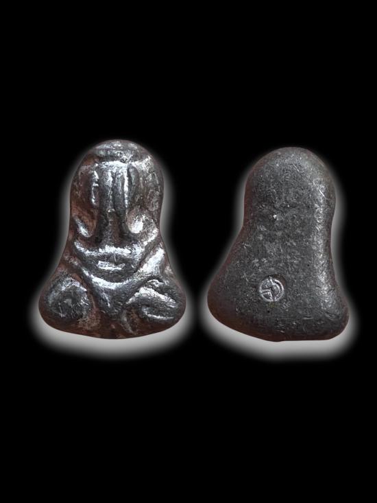 พระปิดตาเนื้อชินตะกั่ว มวลสารแน่นหนึก มีประกายเหล็กน้ำพี้ ผิวเดิมแห้งสนิทไม่ผ่านการล้างหรือขัดแต่ง ด้านหลังมีโค๊ดตอกชัดแสดงถึงการสร้างพิธีดี พระลักษณะเล็กกระทัดรัดแต่เปี่ยมพลัง