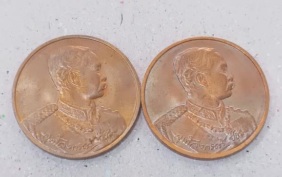 เหรียญ ร.5 ครบรอบ 90 ปี ไทยพาณิชย์ 2540 เนื้อทองแดง 2 เหรียญ สวยๆ