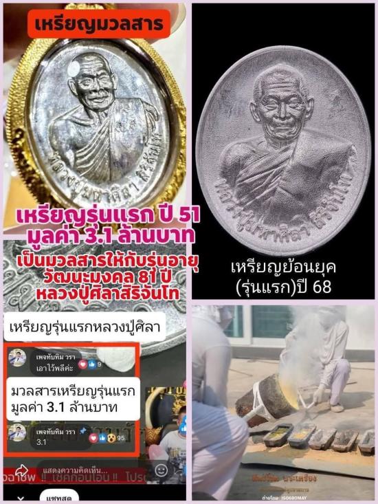 วัดใจ ราคาจอง 9,999 หลวงปู่มหาศิลา สิริจันโท(หลวงปู่ศิลา) อายุวัฒนะมงคล81 เหรียญรูปไข่ รายการที่2 "เนื้อเงินนำฤกษ์" ซีลเดิม ป้ายแดง รับประกันพระแท้ตามกฎเวป *กดดูที่ฆ้อนมีหลายรายการ