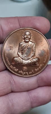 เหรียญบาตรน้ำมนต์ หลวงพ่อทรง วัดศาลาดิน จ. อ่างทอง เนื้อทองแดงขนาด 4 ซม. สร้างปี 2549