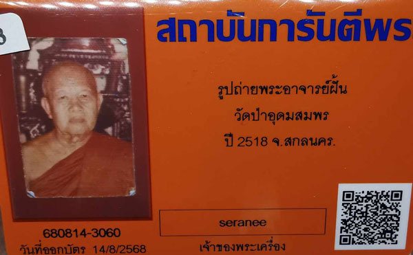 รูปถ่ายพระอาจารย์ฝั้น วัดป่าอุดมสมพร ปี2518 จ.สกลนคร + บัตรG-pra สภาพเดิมค่ะ |