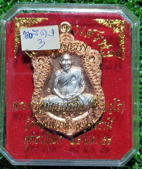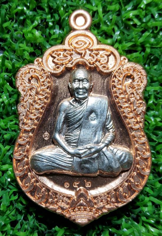 เหรียญเสมารุ่นแรก หลวงปู่ตี๋ ปวโร ออกวัดดอนขวาง เนื้อทองแดงหน้ากากเงิน เลข ๑๔๒ พร้อมกล่อง