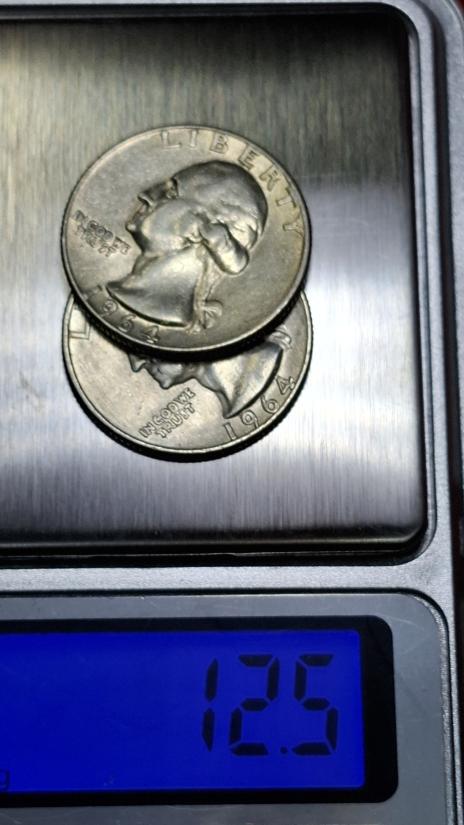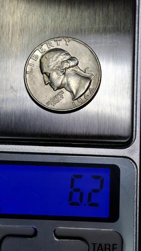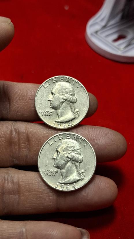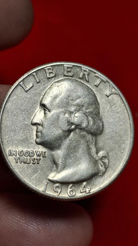 เหรียญควอเตอร์ (Quarter) ของสหรัฐอเมริกาปี ค.ศ. 1964 ซึ่งเป็นเหรียญสุดท้ายที่ผลิตด้วยเงิน 90% (ทั้งหมด2เหรียญ) |