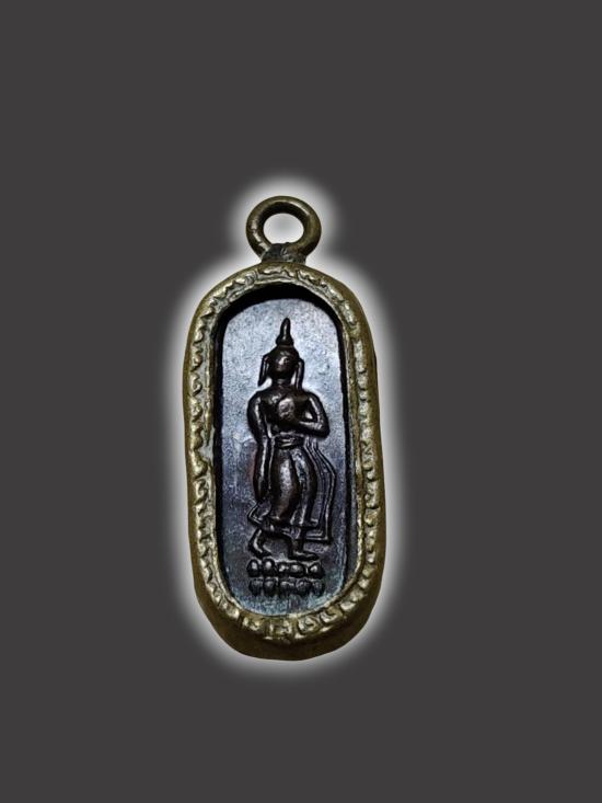 A1951.เหรียญพระลีลาพิมพ์เล็ก กรอบเลี่ยมเก่าเดิม เคาะเดียวเเดง |