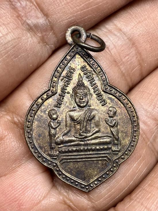 เหรียญพระพุทธไตรยรัตนนายก วัดพนัญเชิงฯ พิมพ์หลังวงเดือน เนื้อทองแดงกะไหล่ทอง ปี2504 จ.พระนครศรีอยุธยา |