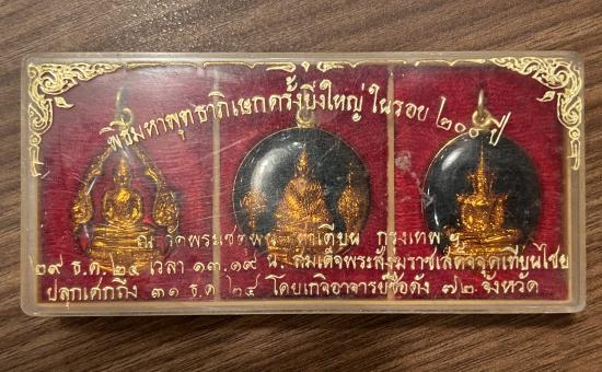 ชุดเหรียญพระแก้วมรกต พิธีมหาพุทธาภิเษก 200 ปี วัดพระเชตุพน ป ี2524 หลังพระพุทธยอดฟ้ามหาราช กะไหล่ทองลงยา พิมพ์ใหญ่ |