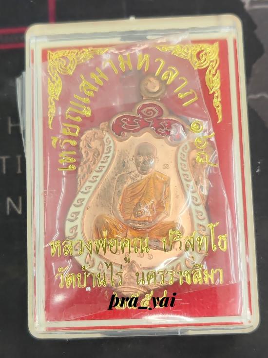 เหรียญเสมามหาลาภ 168 หลวงพ่อคูณ ปริสุทโธวัดบ้านไร่ นครราชสีมา ปี 2558 เนื้อทองแดง ลงยายันต์แดง หลังแบบ แยกชุดกรรมการ หมายเลข 1426 พร้อมกล่องเดิม |