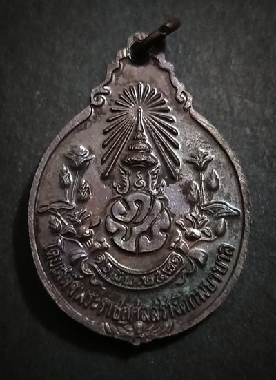 เหรียญรุ่นสร้างโรงพยาบาล หลวงปู่แหวน วัดดอยแม่ปั๋ง พิมพ์หลังภปร. เนื้อทองแดง ปี 2521 |