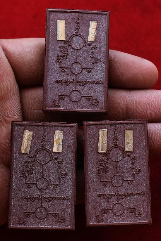 ชุด 3 องค์...เพชรพญาธร เนื้อมหาว่านพันนารีรัก ร้อยนารีหลง ผสมว่านเสน่ห์จันทร์แดง (ผงมวลสารล้วน ครูแรงเต็มสูตร) โรยชนวนอาถรรพณ์ หลังยันต์หุ่นมหาเสน่ห์ ฝังตะกรุดเงินลงนะเมตตา 2 ดอก มวลสารครู ปี 2552 หลวงปู่เฉลิม วัดบุญนาคประชาสรรค์ จ.สมุทรสงคราม พร้อมซองรูปใบฝอยเดิมจากวัด สภาพพระตามรูปที่ลงทุกประการ (ขนาดประมาณ 4.7 x 2.9 ซม.)