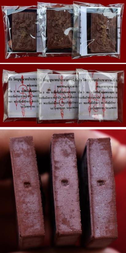 ชุด 3 องค์...เพชรพญาธร เนื้อมหาว่านพันนารีรัก ผสมว่านเสน่ห์จันทร์แดง ฝังตะกรุดเงิน 2 ดอก ปี 2552 หลวงปู่เฉลิม วัดบุญนาคประชาสรรค์ จ.สมุทรสงคราม พร้อมซองรูปใบฝอยเดิมจากวัด |