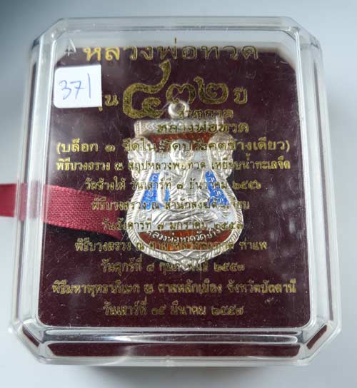 เหรียญเสมา หลวงปู่ทวด 432 ปี ชาตกาล เนื้อเงินลงยาลายธงชาติ (บล็อก3ขึดใน รัดประคตข้างเดียว) เบอร์ 371 พร้อมกล่องครับ |
