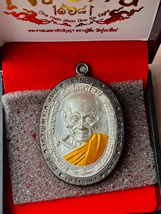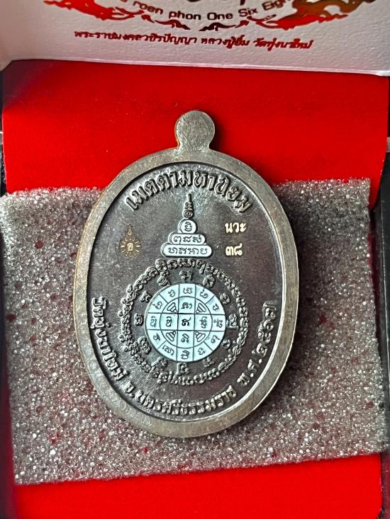 เหรียญรุ่น เจริญพร 168 หลวงปู่อิ่ม วัดทุ่งนาใหม่ จ.นครศรีธรรมราช นวะหน้าเงิน พร้อมกล่องกำมะหยี่ |
