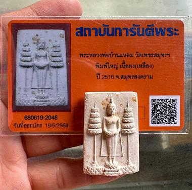 สมเด็จรุ่นแรกฉัตรขาว หลวงพ่อวัดบ้านแหลม ปี 2516 วัดเพชรสมุทรวรวิหาร จ.สมุทรสงคราม พิมพ์ใหญ่ เนื้อผง สวยเดิม พร้อมบัตรรับประกันจากจี |