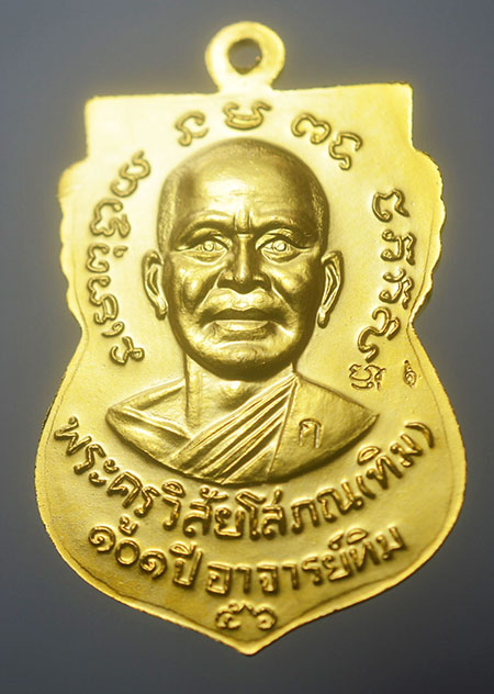 หลวงปู่ทวด อาจารย์ทิม เหรียญเสมาหน้าเลื่อน เนื้อทองขาวชุบทอง แจกกรรมการ โค๊ด ก ตอก 2 โค๊ด รุ่น 101 ปี อาจารย์ทิม ปี 2556 |