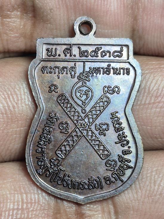 เหรียญตะกรุดคู่ หลวงพ่อพาน วัดโป่งกะสัง เนื้อทองเเดง บล็อคอาขีด ปี 2538