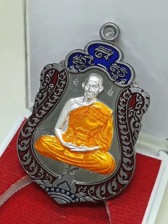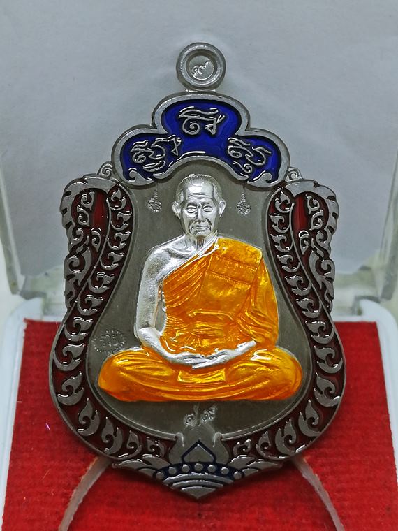 เหรียญเสมา รวยมหาสมปรารถนา หลวงพ่อรวย อคฺคสาโร วัดมาบตาพุด อ.เมือง จ.ระยอง เนื้อตะกั่วหน้ากากเงินลงยา หมายเลข 79 |