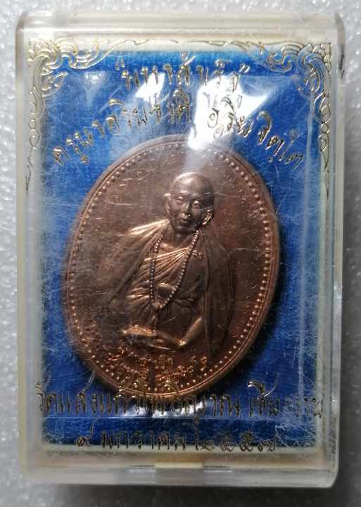 เหรียญมหาสำเร็จ เนื้อทองแดง ครูบาอริยชาติ วัดแสงแก้วโพธิญาณ เชียงใหม่ ปี 2557 จารหน้า-หลัง กล่องเดิม |