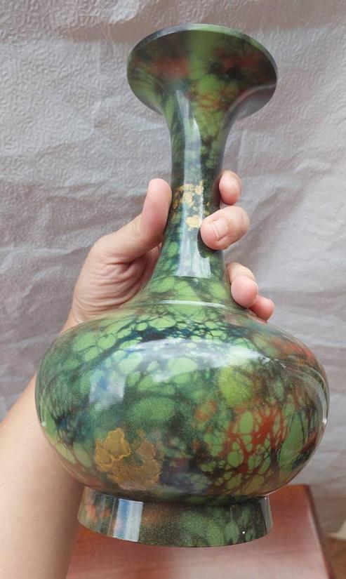***วัดใจ***แจกันเก่าเก็บเนื้อสำริดเคลือบผิวสีทอง-เขียว งานของญี่ปุ่น สูง 12 นิ้ว ใบนี้หนัก 1 โลนิดๆ |