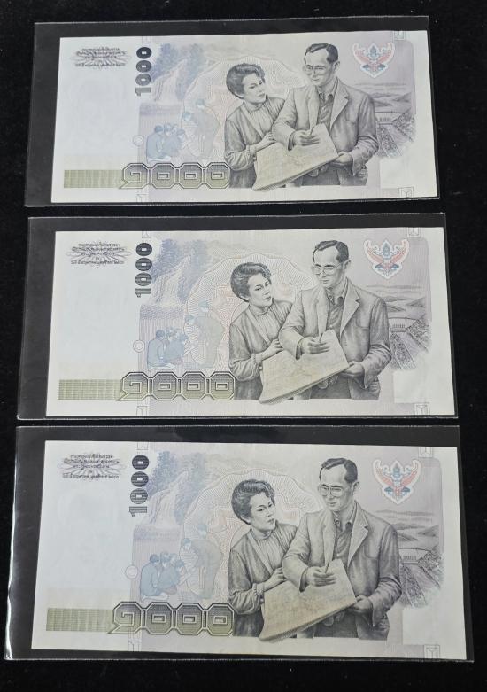 ธนบัตรพัน 1,000 บาท จัมโบ้ ไม่ผ่านการใช้ เลขเรียงติดกัน 3 ฉบับ