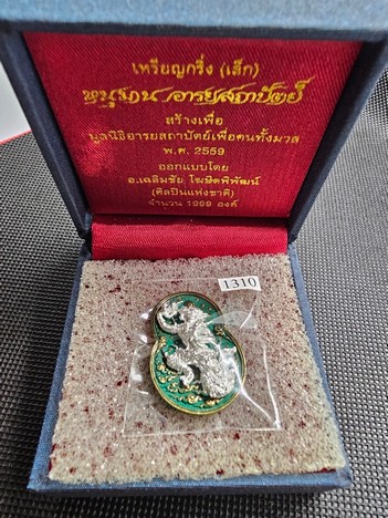 ราบขออนุญาตท่านอาจารย์เฉลิมชัยฯ เปิดแบ่งปัน เหรียญกริ่งหนุมานอารยสถาปัตย์ พิมพ์เล็ก เนื้อบรอนซ์เขียวพาติน่า องค์เงิน หมายเลข 1310 ไม่มีบัตรรับรองครับ เคาะเดียวแดงครับ |