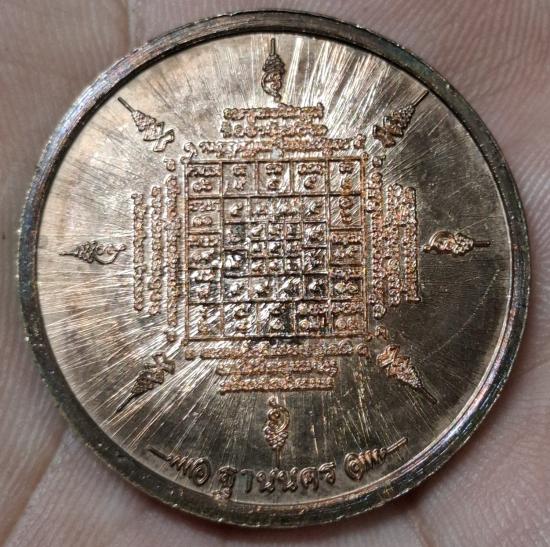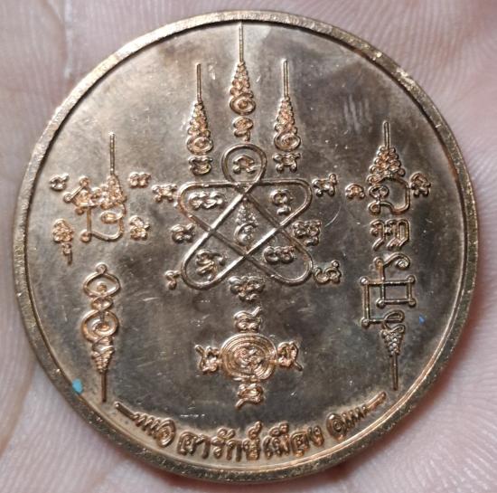 เหรียญตั้งบ้านตั้งเมือง หลังยันต์มหาอริยโสฬจใหญ่(ยันต์ฐานนคร คุุ้มครองหนุนดวงชะตาตั้งบ้านตั้งเมือง)หลวงพ่อเล็ก วัดท่าขนุน อฐิษฐานจิตปลุกเสก เนื้อทองแดง |